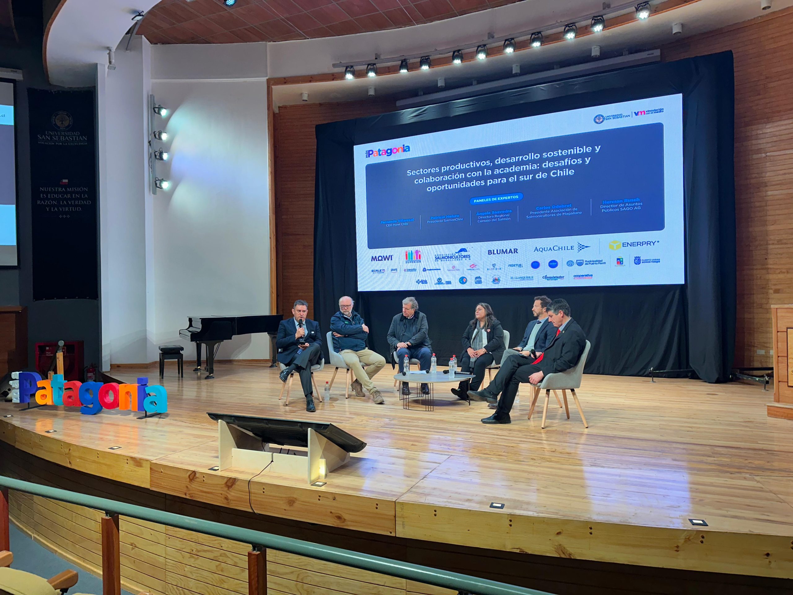 En ese contexto, la directora regional del Consejo del Salmón en Los Lagos, Ángela Saavedra, participó en el panel de expertos “Sectores productivos, desarrollo sostenible y colaboración con la academia: desafíos y oportunidades para el sur de Chile”, donde compartió con Patricio Melero, presidente de SalmonChile A.G.; Carlos Odebret, presidente de la Asociación de Salmonicultores de Magallanes; Herman Rusch, director de Asuntos Públicos de la Sociedad Agrícola y Ganadera de Osorno (SAGO); y Fernando Villarroel, Gerente General de Mowi Chile.