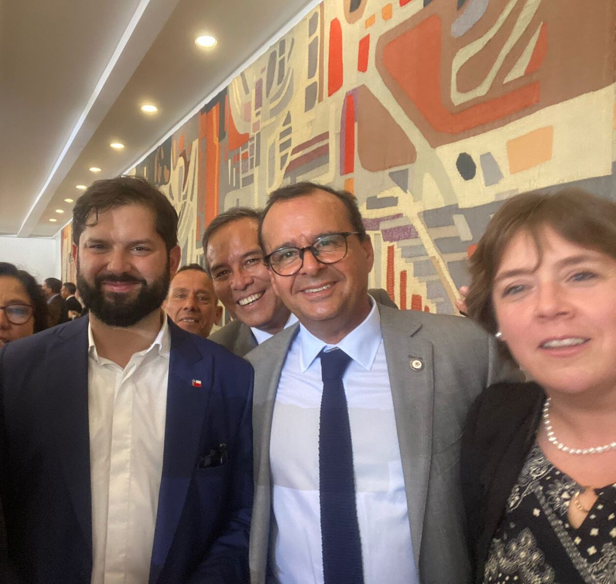 La comitiva chilena estuvo conformada por el ministro de Relaciones Exteriores, Alberto van Klaveren; Hacienda, Mario Marcel; de Defensa, Adriana Delpiano; Economía, Nicolás Grau; Agricultura, Esteban Valenzuela; Ciencia, Tecnología, Conocimiento e Innovación y vocera, Aisén Etcheverry; así como las subsecretarias de Relaciones Económicas Internacionales, Claudia Sanhueza, y de Turismo, Verónica Pardo. También participaron el embajador de Chile en Brasil, Sebastián Depolo, y el director de ProChile, Ignacio Fernández.